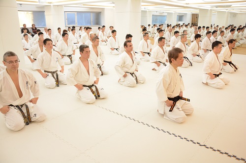 続いて待田京介総本部顧問が乾杯の音頭を取って開宴。山田総本部長をはじめ各支部長、髙橋佑汰ら全日本選手の挨拶の後、2017年の総本部年度賞の授賞式があり、郷田最高顧問による一本締めで盛況の内に中締めとなった。