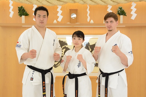4月6日(水)総本部代官山道場において、4月17日(日)に東京体育館で行われる『✚日本赤十字社 災害義援金チャリティー 第53回オープントーナメント全日本空手道選手権大会』並びに『2021全日本女子空手道選手権大会』の開催記者会見が実施され、松井章奎館長をはじめ、今大会に出場する前回大会優勝者のコンスタンティン・コバレンコ、同準優勝の西村界人、同4位の石﨑恋之介、同5位の山川竜馬、同6位の加賀健弘、同7位の奥寺優輝、同8位の小林健人、前回女子大会優勝者の佐藤七海の計8選手が出席し、それぞれ大会に臨む抱負を語った。