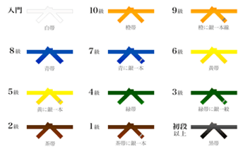 入門後は白帯から始まり、審査に合格することで昇級していきます。審査は年3~4回行なわれ級が上がるにつれ、帯の色も変わります。