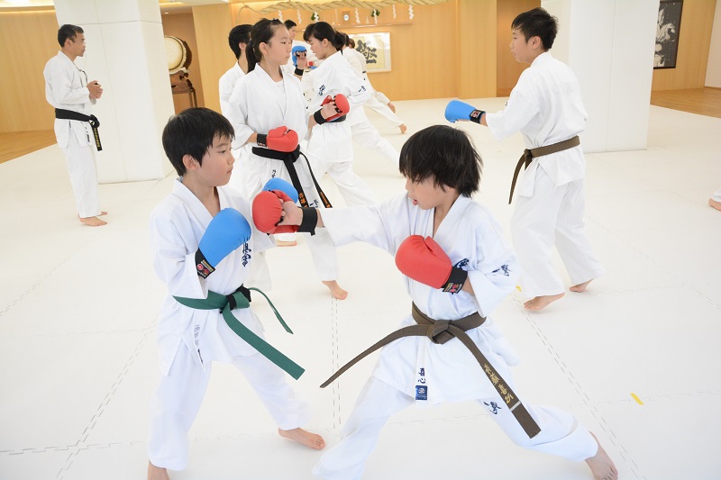 その後に今回行った突き技を意識した試合形式の組手、最後は白色と黄色の2つの電球で、突きや蹴りを繰り出す反応に重点を置いた稽古を行い、この日の講習会は終了した。
