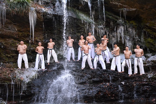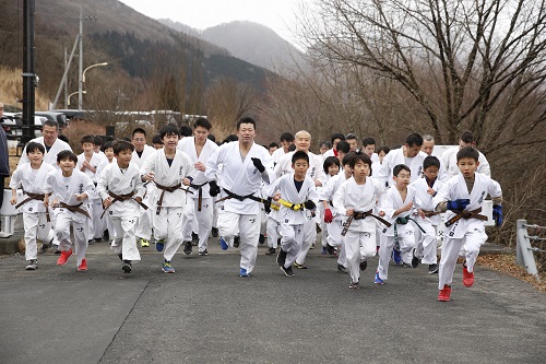 2日目は神社の境内で午前6時30分より早朝稽古と神社拝殿にて祝詞、午後1時からは22kmマラソン大会(少年部は約9km)と、報徳殿では2018年度の総本部昇段審査が執り行われた。そして夜には恒例の演芸大会が実施され、各班が趣向を凝らした芸を披露して大いに盛り上がった。最終3日目も同じく6時30分より早朝稽古・祝詞を行い、三峰山を下山。途中に流れる清浄の滝にて滝浴び修行を行い2泊3日の冬合宿を締めくくった。