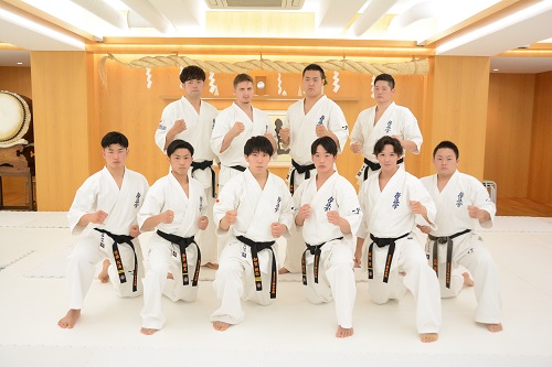 11月9日(水)総本部代官山道場において、11月20日(日)に東京体育館で行われる『✚日本赤十字社 災害義援金チャリティー 第54回オープントーナメント全日本空手道選手権大会』に向けた記者会見が実施され、松井章奎館長、赤石誠日本代表監督をはじめ、今大会に出場する前回大会優勝者・西村界人、同2位・山川竜馬、同3位・加賀健弘、同4位で前々回第52回大会優勝者コバレンコ・コンスタンティン、同6位・佐藤拓海、同7位・石﨑恋之介、同8位で全日本体重別大会軽量級優勝者・飯塚翼、同軽軽量級優勝者・金子雄大、同中量級優勝者・大秦稜司、2019年第12回世界大会8位で3年ぶりに復帰する荒田昇毅、女子では2020・2021全日本女子大会優勝者で今大会3連覇を狙う佐藤七海、全日本体重別大会女子軽量級優勝者・小木戸琉奈の計12名が出席し、それぞれ大会に臨む抱負を語った。