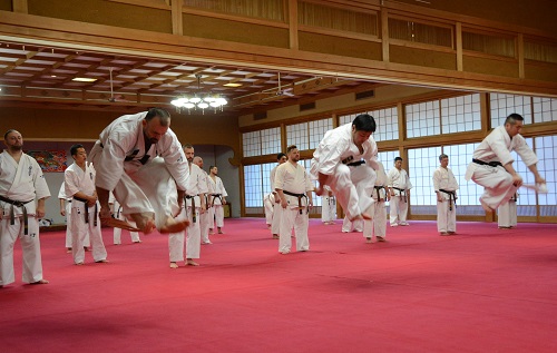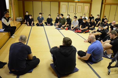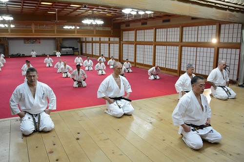 今年も宿泊者の人数制限により参加者は参段以上を受ける昇段審査の受審者25名と総本部の師範、指導員、スタッフのみで行われ、今回は国内はもとより政府の外国人入国規制緩和により各国の支部長、道場責任者、また道場生の参加があった。