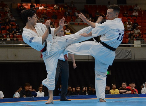 6月17日(土)18(日)、大阪にて昨年に続いて極真会館と真正会の共同開催による「2023オープントーナメント全日本体重別空手道選手権大会」が、極真会館の「第19回全アジアウェイト制空手道選手権大会」と「第38回全日本ウェイト制空手道選手権大会」を兼ねて開催された。