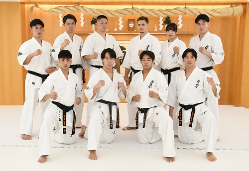 11月13日(水)総本部代官山道場において、11月30日(土)12月1日(日)東京体育館で行われる『✚日本赤十字社 災害義援金チャリティー 第56回オープントーナメント全日本空手道選手権大会』に向けた記者会見が実施され、松井章奎館長はじめ、今大会に出場する第39回全日本ウェイト制重量級優勝者・荒田昇毅、第52回全日本大会優勝者コバレンコ・コンスタンティン、第39回全日本ウェイト制軽重量級優勝者・山上大輝、同中量級優勝者・飯塚翼、同軽量級優勝者・樋口知春、同中量級準優勝者・谷川蒼哉、同重量級3位・西村大河、同軽量級3位・金子雄大、第13回世界大会技能賞・佐藤拓海、女子では第39回全日本ウェイト制中量級優勝者・小城みなみの計10名が出席し、それぞれ大会に臨む抱負を語った。