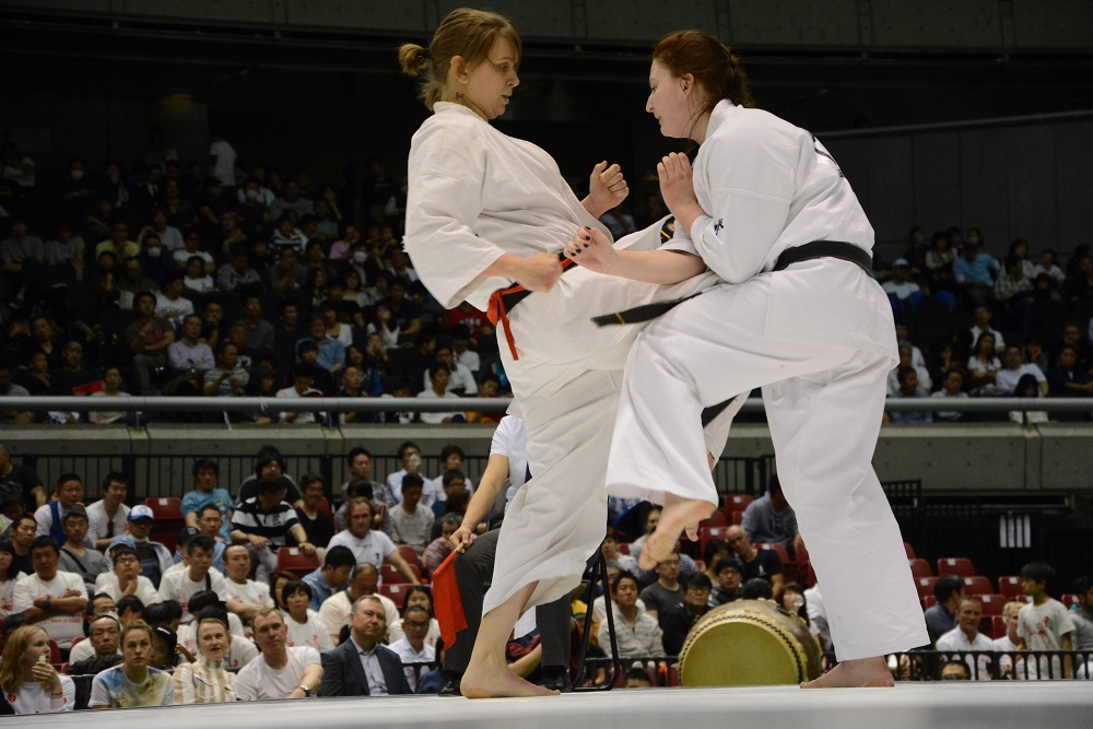 4月15日(土)16日(日)、東京体育館で「2017全世界ウェイト制空手道選手権大会」と同時開催で「2017国際親善空手道選手権大会」が行われ、型競技部門12カテゴリーと組手競技部門44カテゴリーに幼年から青少年、女子、壮年の各選手、約1800名が参加して覇を競った。